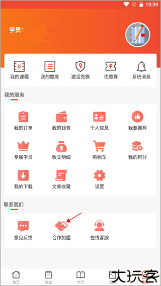 进入软件主页,切换到“我的”界面,点击“合作加盟”。