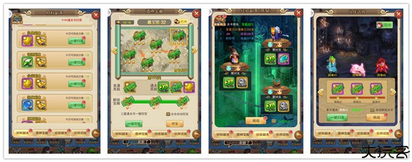 副本类型材料、经验、宝藏、试炼四类副本依等级开放,可获取进阶丹、银两、伙伴碎片等关键资源。