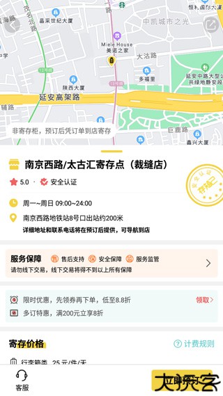 不支持到店直接寄存,必须线上预订后再前往门店。
