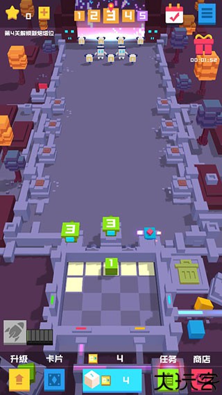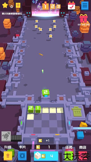 高智能方块炮塔持续攻击敌人,合成策略带来爽快战斗体验。