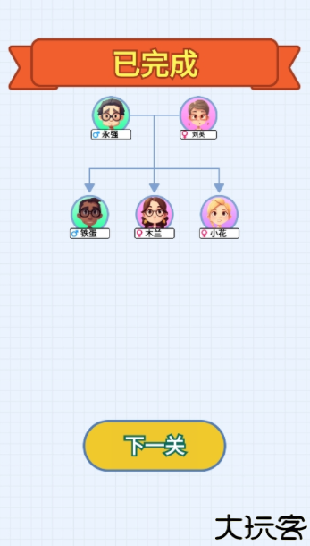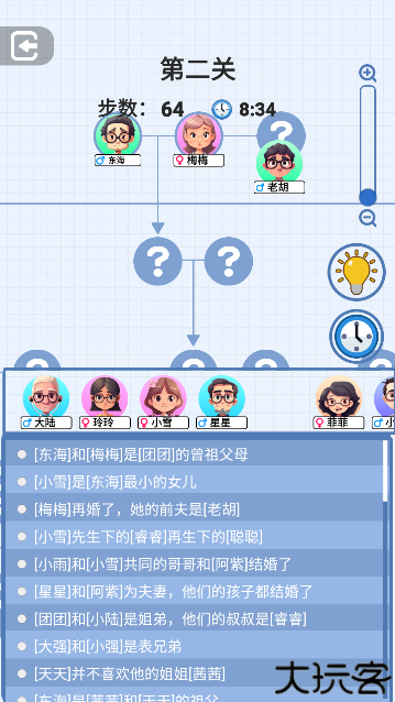 2、玩家需要在规定的时间内通过拖拽的方式将人物放入到圆圈中,根据屏幕下方的关系指示去放置。