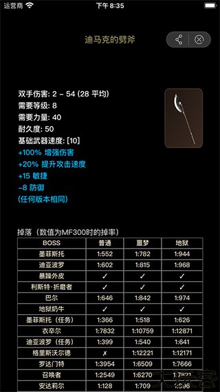 查看武器等级、伤害数值及附加效果,辅助判断装备优劣。