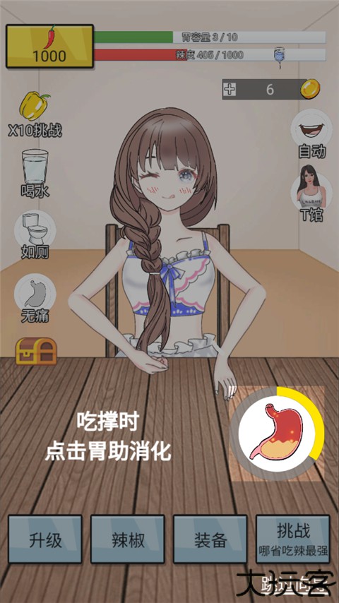 如果吃撑了,可点胃部帮助消化,保证角色继续挑战辣椒大赛。