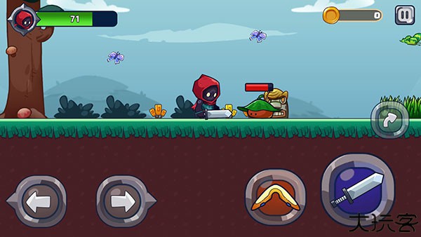4、剑的左边是飞镖,可以在水平方向内来回飞,远程攻击力会比剑更大,当打败敌人后,会有金币可以拾取。