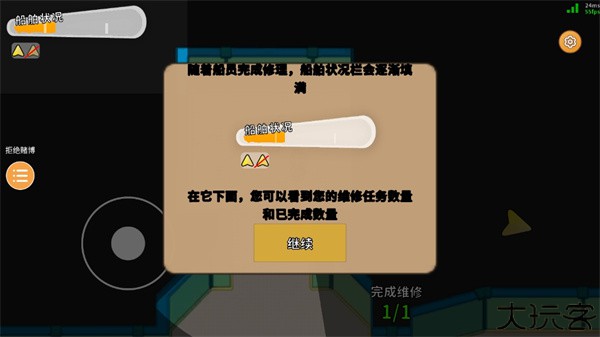 3、船体进度条反映修理进展,底部显示任务完成情况。