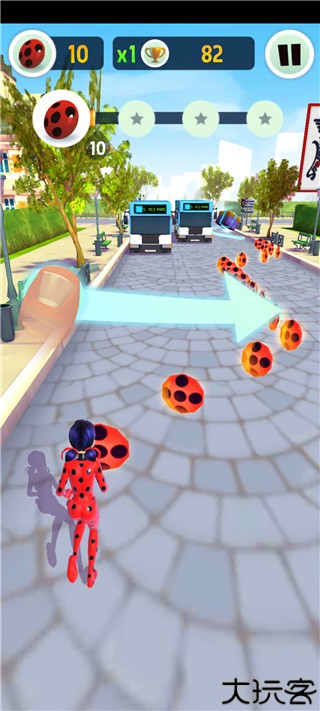 5、当然在道路上还有大量的瓢虫币和丰富的道具,左右滑动屏幕可进行拾取;