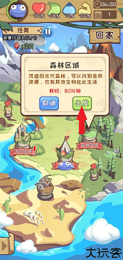 选择感兴趣的探索地带,确认目标后点击开始出发。