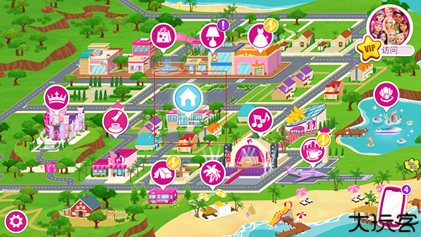 4、除了日常生活模拟之外,还能带芭比去海滩、商场、公园等地冒险探索。