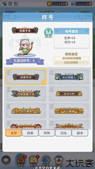 4、游戏中还有各种称号,图鉴中会给出获取途径,称号装备后,在世界频道发言时大家都能看到哦,闪闪发光引人瞩目。