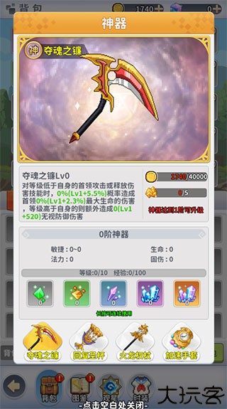 2、可以在背包中查看自己的神级装备,是非常好用的道具,要记得升级。