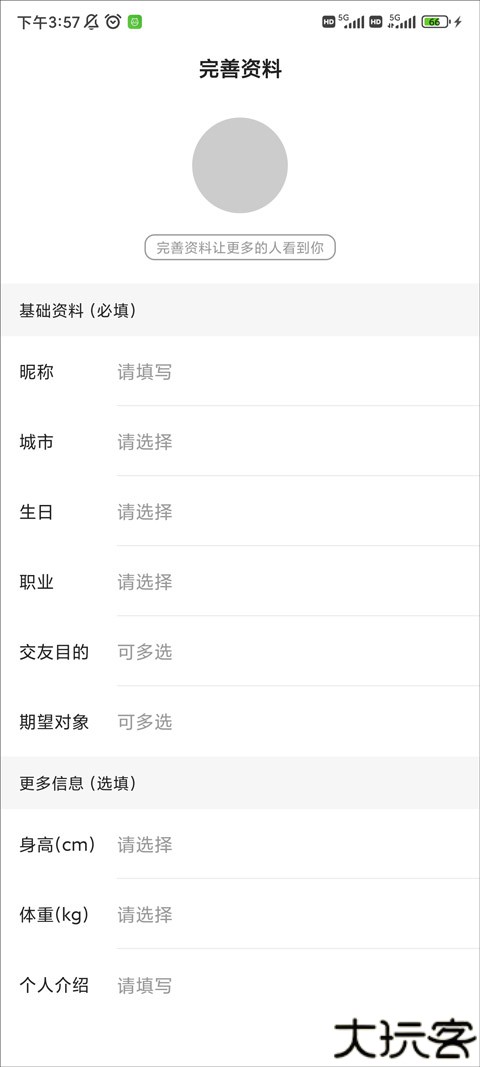 上传头像、设置昵称,补充城市与交友偏好等内容。