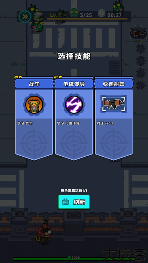 2、当最上面能量条满了后就可以选择新技能和升级技能。
