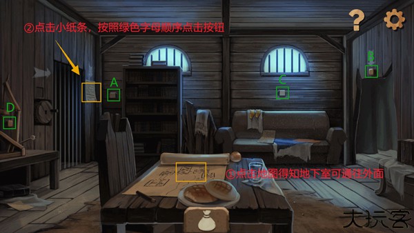 4、左门获取钥匙,右门查看地图与线索,记下按钮顺序。
