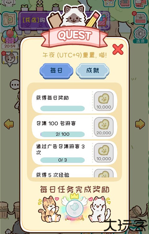 3、玩家在建造好建筑之后就可以点击右下角小猫图标去招揽顾客啦。
