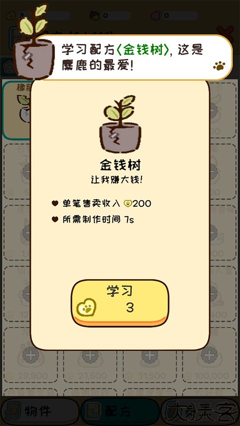 2、游戏里还有各种配方可以学习,用来提高自己的收益,更好的建造家园。