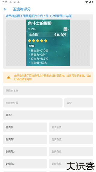输入圣遗物信息可快速查看评分与详细属性分析。