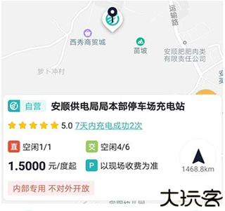 3、查看附近的充电站,找到最靠近自己的,点击进入。