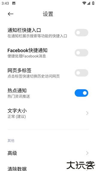2、进入通知设置,关闭热榜与快捷网址显示入口。
