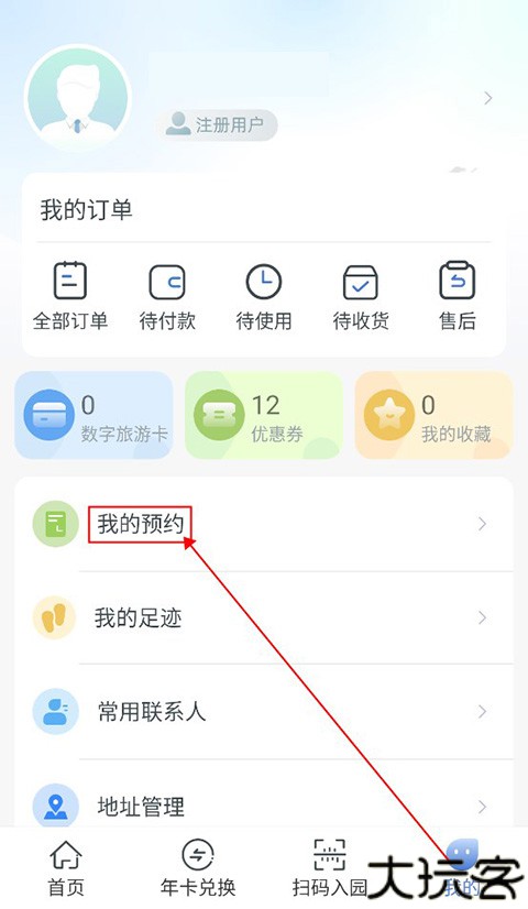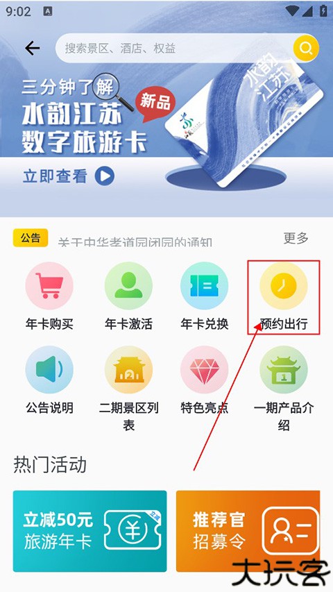 1、进入软件后,点击旅游年卡,进入后需要点击预约出行进入。