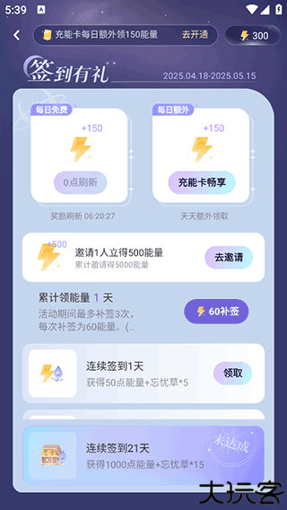 1、首页右上角点击能量按钮,进入能量奖励界面。
