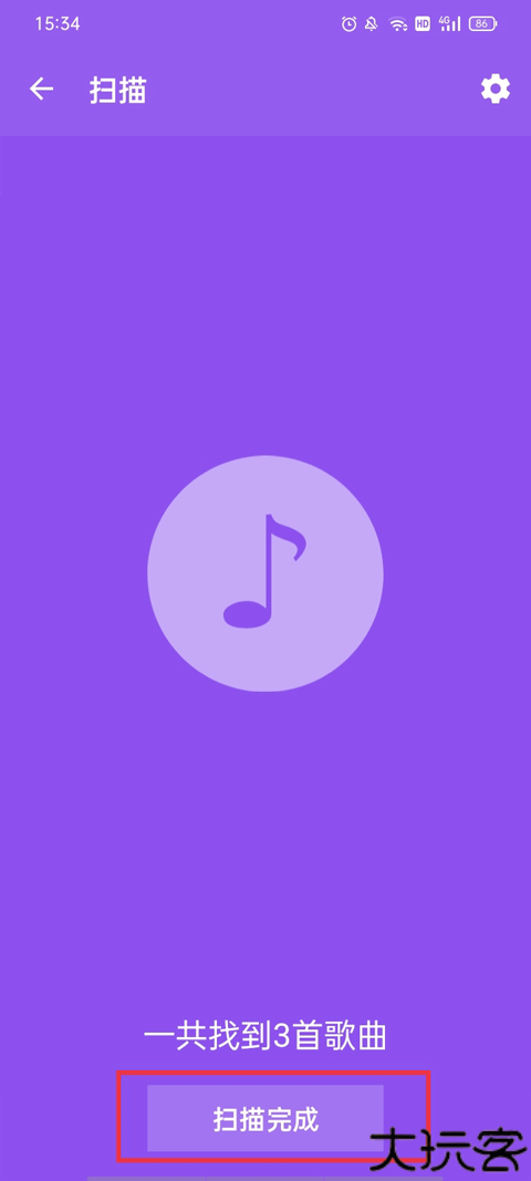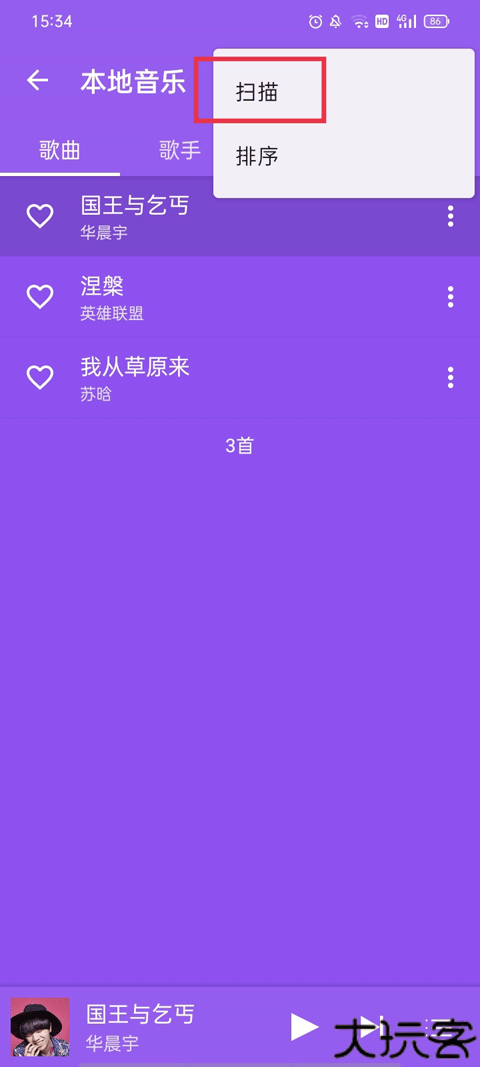 3、击右上角菜单图标,选择扫描选项,添加设备中新曲目。