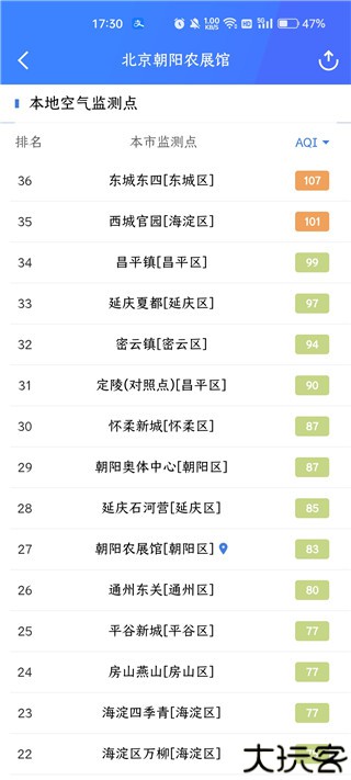 2、空气地图:拥有着2000多个监测站实时数据,超过380个城市空气质来去观看。