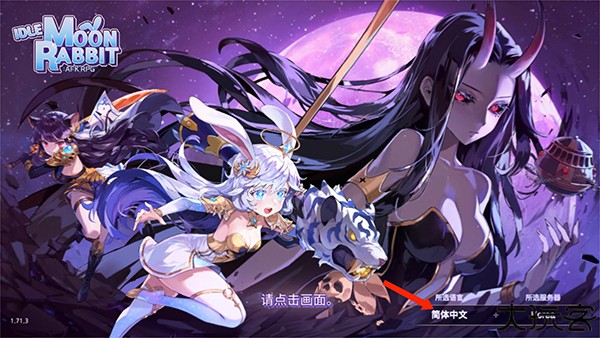 1、打开月兔养成记游戏后,进入游戏主界面,而右下角可以选择语言,然后点击屏幕中间开始游戏。
