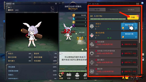 月兔养成记中文安卓版,英文名为Idle MoonRabbit: AFK RPG,是以来自月亮上的兔子为主要角色的二次元冒险闯关休闲放置挂机游戏。游戏采用精美细致的卡通画风打造,无论是主角、小怪还是武器装备,都给人一种Q萌活泼且可爱的感觉。月兔养成记中文安卓版下载完成后,玩家将得知游戏的剧情,由于邪恶的黑暗吞噬了美丽的月光,玩家将扮演解救月亮的月兔琳,在击杀小怪和闯关的过程中,将获得各种资源,可用于制作作出各种装扮和武器,将实力和美貌一同提升。