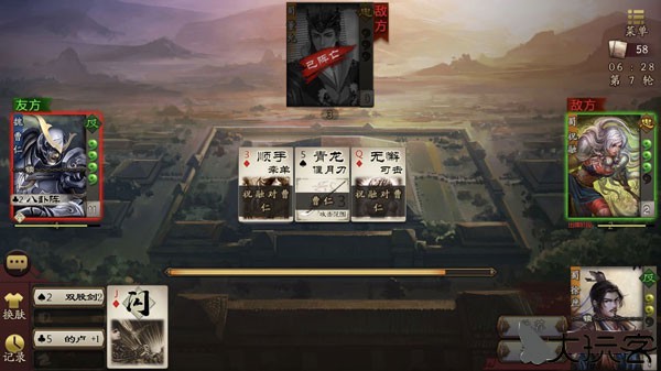 3、从系统抽牌开始出牌,包含锦囊、杀、闪、桃,灵活组合克敌制胜。