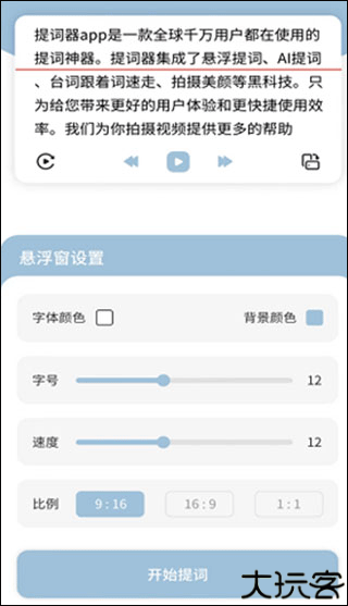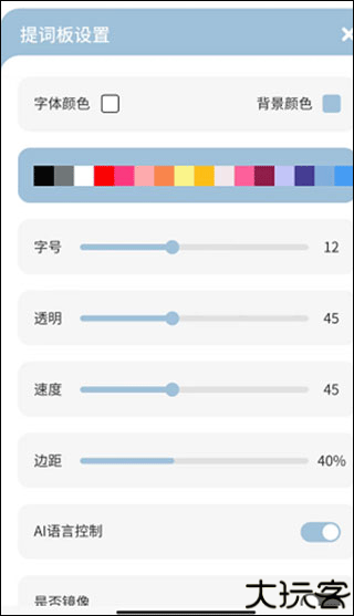 2、支持全屏提词,还能自定义字体及背景颜色调节。