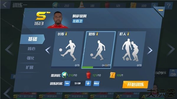 根据球员场上位置不同,可以在训练场对各小项能力进行训练,根据训练的时间还有教练的选取获得不同的能力值提升。