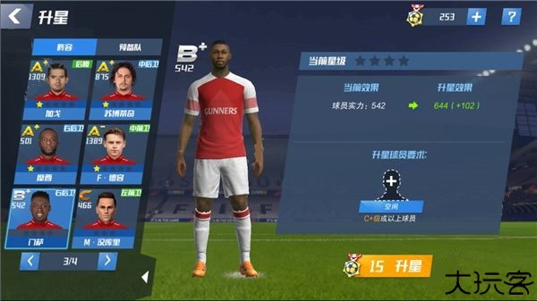 所有球员初始星级都为1星,升星能提高球员能解锁球员技能和技能等级上限(技能系统后续推出),同时也能提高球员能力值。
