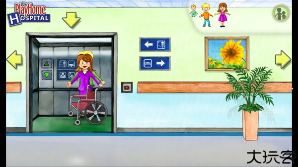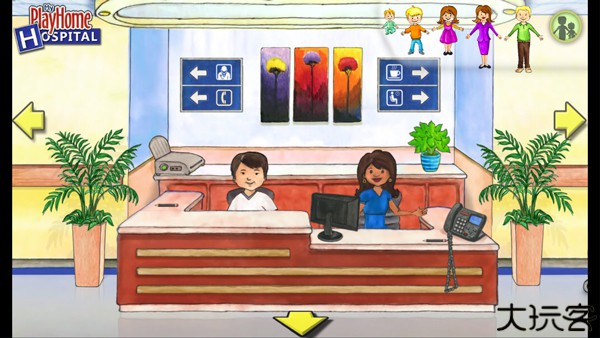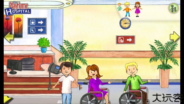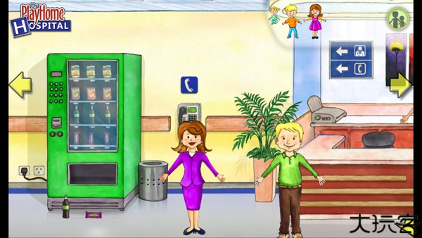 3、玩家点击左右两边的箭头可以切换到各种不同的医院游戏场景。