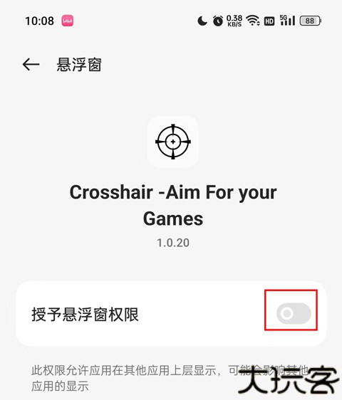 1、安装后开启悬浮权限,确保准星可正常显示。