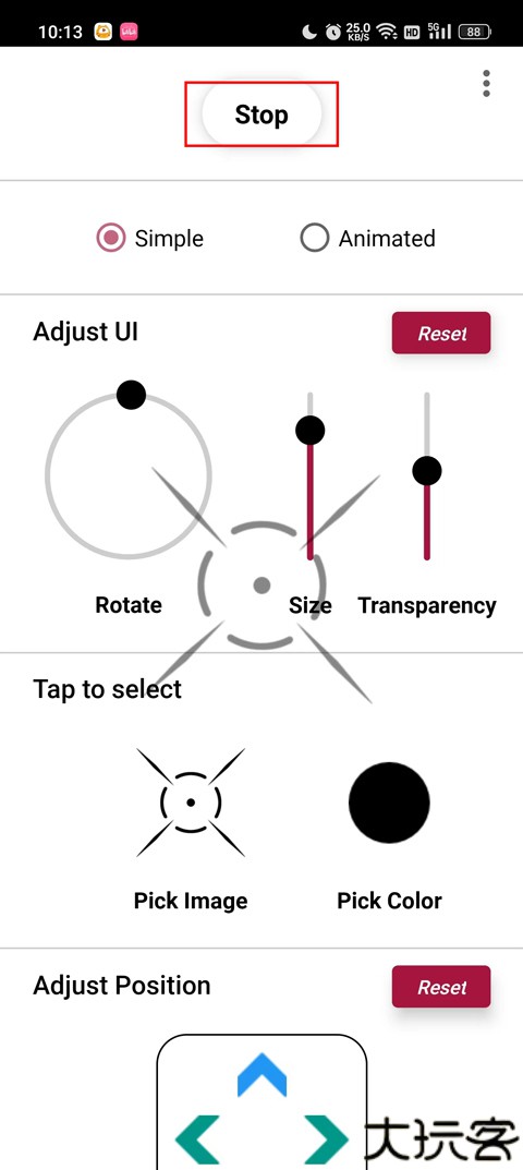 2、在界面中调整透明度与尺寸,适应视觉需求。