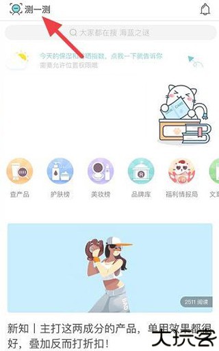 1、打开下载安装好的app,在首页,点击左上角的【测一测】开始测试。