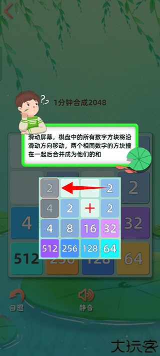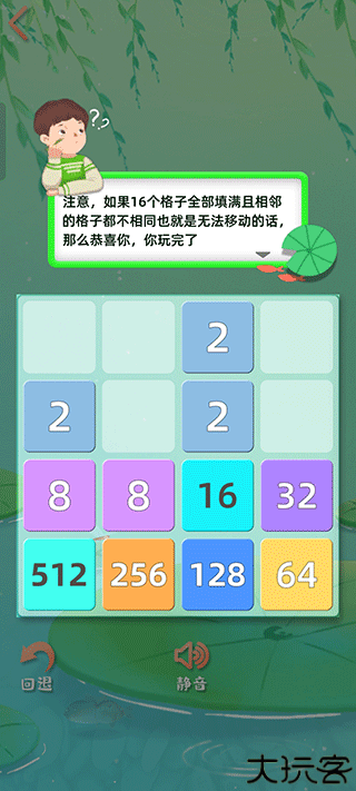 数值相同的方块相撞可融合成一个更大数值。