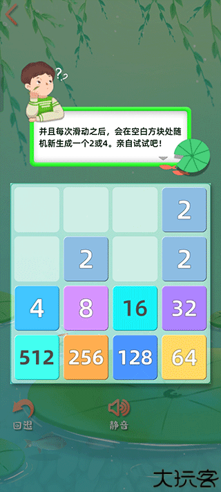 每次滑动后随机出现“2”或“4”数字方块。