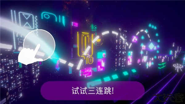 2、游戏最多允许玩家进行三连跳,屏幕右侧依靠划出一条直线来切割前方出现的怪物以消灭它们。