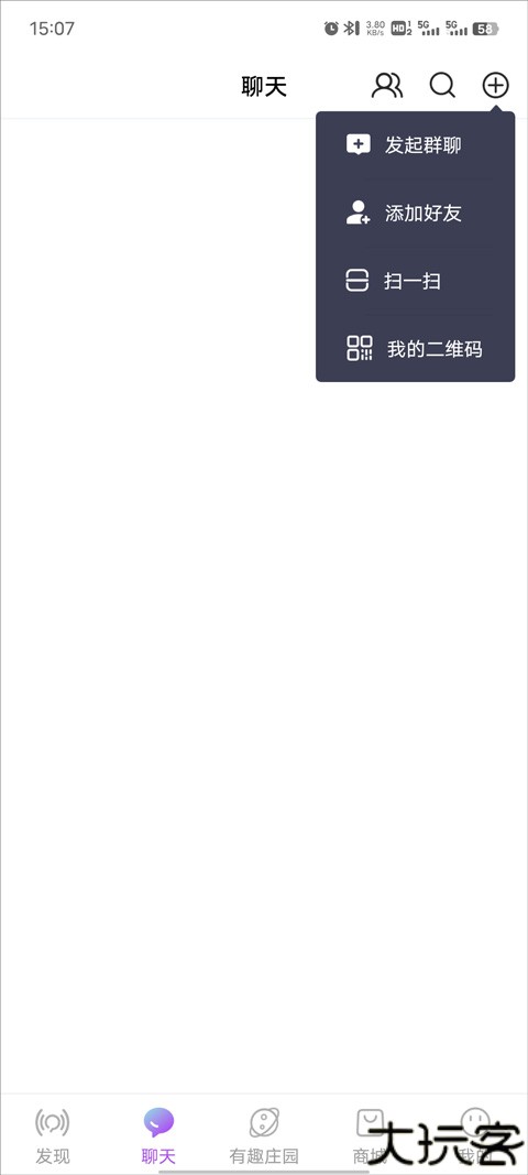 3、点击“聊天”,用户可以在这里添加好友,然后与其他用户交流聊天。