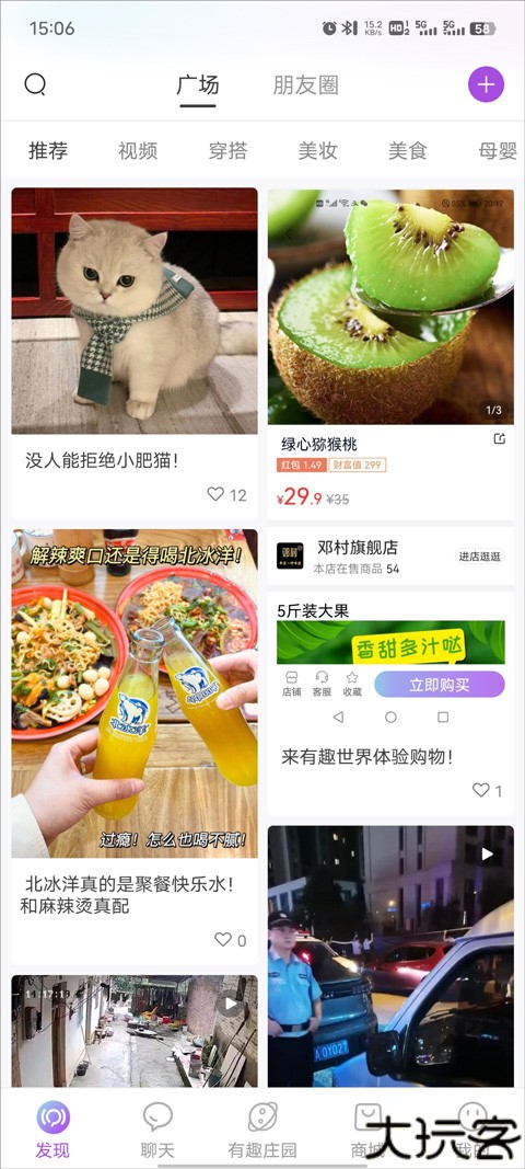 2、进入软件后,点击“发现”按键,“发现”里有着很多其他用户发布的有趣视频。