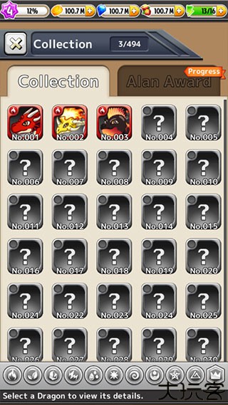 4、点击游戏中的Collection,就能查看你目前为止所收集到的龙图鉴。