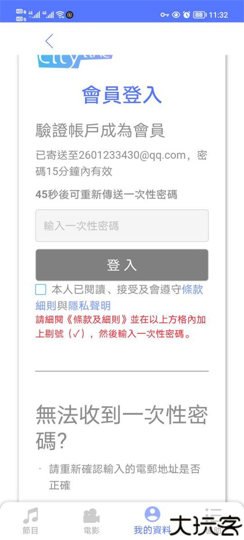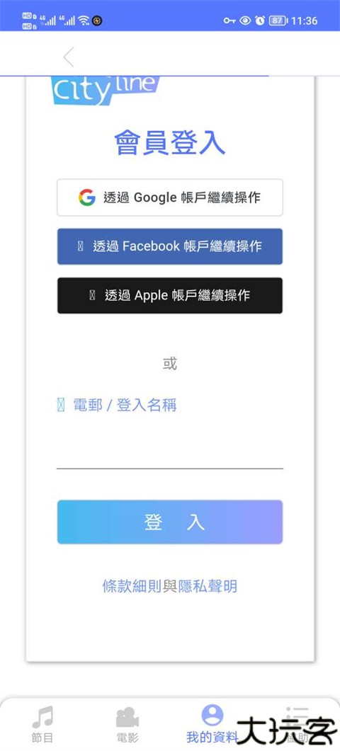 打开软件后进入个人页,输入邮箱账号并点击登录。