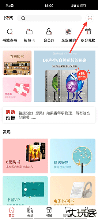 1、若想要扫码购书,先在主界面点击扫描图标。