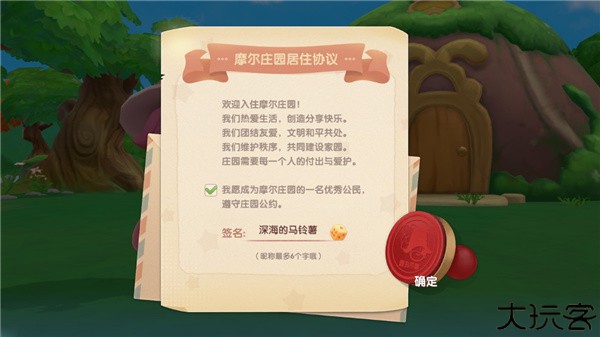 3、进入居民登记阶段,签署个人信息正式入住庄园系统。