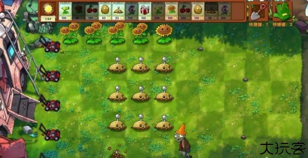 2、玩家可在其他路可以都种上“豌豆土豆雷”和“豌豆坚果墙”。