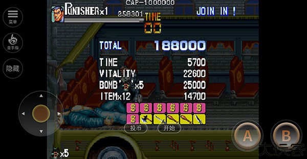 左下移动,A键攻击,B键跳跃,按投币开始。