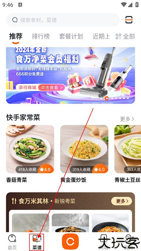 1、打开添可厨房app手机版进入可以看到菜谱页面,有非常多的菜谱可以使用。