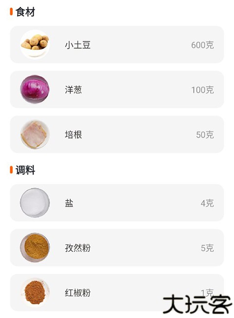3、用户可以查看所需食材和调料。