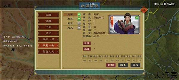 3、进入国家界面后,点击“宗室-女”查看王族女子具体信息。